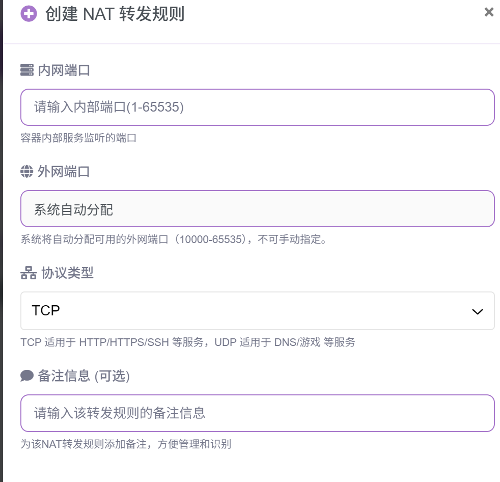 这个内网端口你自己随便填写,当然要按照规定(1-65535以内的都可以)