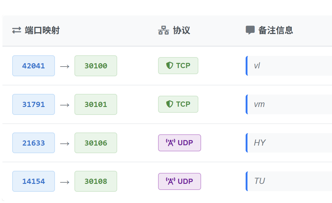 若你的 VPS 是全端口开放,则无需考虑映射问题,直接使用你部署时设置的端口即可。